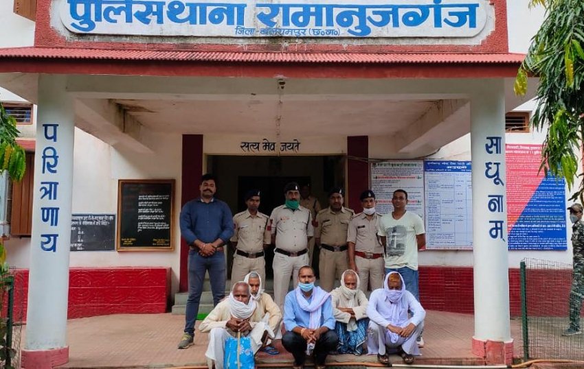 अतः उपरोक्तानुसार संबंधित कुल 09 व्यक्तियों एवं मनोहर प्रताप सिंह भृत्य (जिला कार्यालय-बलरामपुर) तथा उमाशंकर पाण्डेय सहायक वर्ग-03 (तहसील कार्यालय-वाड्रफनगर) द्वारा शासकीय संम्पति के संबंध में दस्तावेजों में कटरीना/अभिलेखों से छेड़छाड़ तथा छल कर ग्राम महाराजगंज के शासकीय मद की भूमि करीब 1300 एकड़ को अपने-अपने नाम पर दर्ज करा लिये हैं। मामला गंभीर प्रकृति का होने से पुलिस अधीक्षक महोदय बलरामपुर के द्वारा प्रकरण की विवेचना के लिये अनुविभागीय अधिकारी महोदय रामानुजगंज के मार्गदर्शन में स्पेशल टीम का गठन कर थाना प्रभारी रामानुजगंज निरीक्षक सुरेन्द्र उके व चौकी प्रभारी विजयनगर उप निरी. विनोद पासवान को मामले की विवेचना के लिये निर्देशित किया गया। दौरा विवेचना उक्त आरोपीगण 1. मनोहर प्रताप सिंह पिता राम सिंह उम्र 44 वर्ष ग्राम मितगई, 2. मोइनूदीन पिता रहीम उम्र वर्ष ग्राम गम्हरिया, 3. खेलावन यादव पिता चोवा यादव उप्र 70 वर्ष ग्राम गम्हरिया, इसहाक अंसारी पिता स्व. नान्हू अंसारी उम्र 72 वर्ष ग्राम विजयनगर, 5. गुलामनबी पिता जसमुदीन उम्र 70 वर्ष ग्राम महाराजगंज, सभी चौकी विजयनगर, थाना रामानुजगंज छ.ग. को गिरफ्तार किया गया