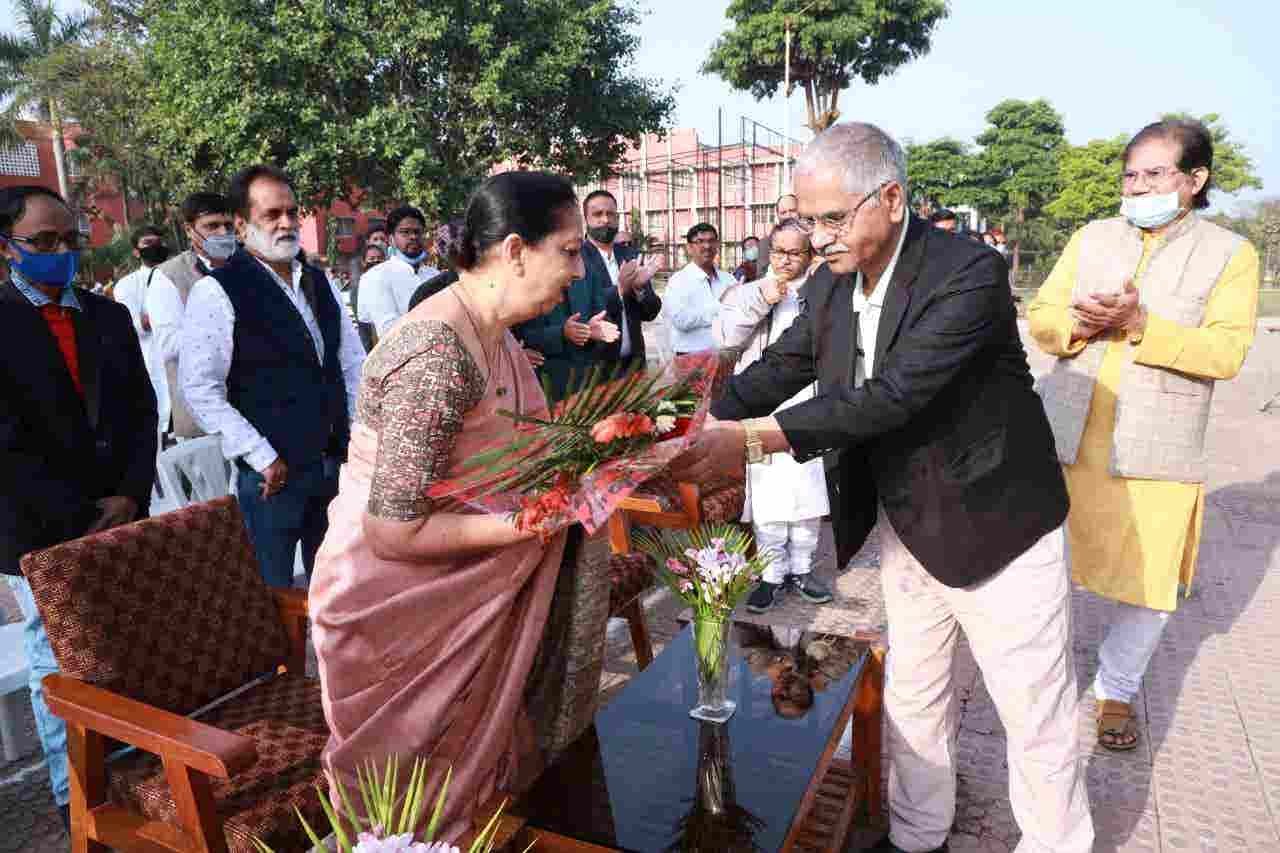 ख़ैरागढ़. इंदिरा कला संगीत विश्वविद्यालय खैरागढ़ में प्रतिवर्षानुसार इस वर्ष भी गणतंत्र दिवस बुधवार, 26 जनवरी 2022 को विश्वविद्यालय के मुख्य परिसर में मनाया गया। इस अवसर पर कुलपति ममता (मोक्षदा) चंद्राकर द्वारा ध्वजारोहण किया गया। इसके पश्चात समस्त शिक्षकों, संगतकारों एवं कर्मचारियों द्वारा राष्ट्रगान किया गया। कुलसचिव प्रो. आईडी तिवारी, शिक्षक संघ की ओर से प्रो. नीता गहरवार, संगतकार संघ की ओर से पृथ्वीराज कुमार, कर्मचारी संघ की ओर से प्रखर शरण सिंह, विद्यार्थी प्रतिनिधि भक्ति बिसेन और अजय सोनी ने कुलपति का पुष्पगुच्छ से स्वागत किया।