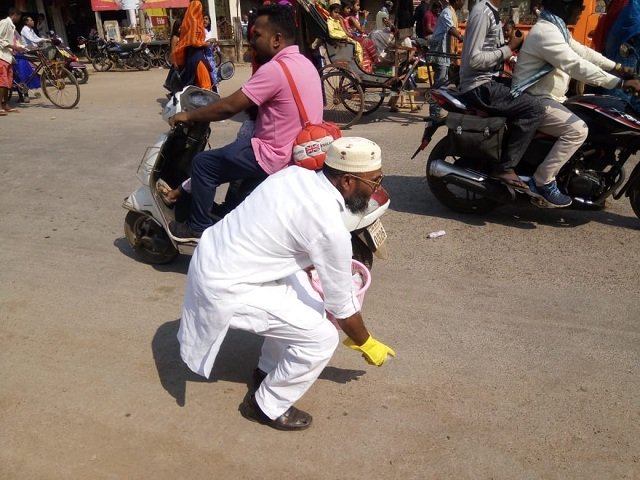 खैरागढ. जुलूस के दौरान गाजर का हलवा, बिस्किट आदि खाने के बाद फेंके गए कचरे को पूरी जिम्मेदारी से उठाते शमसुल होदा खान।