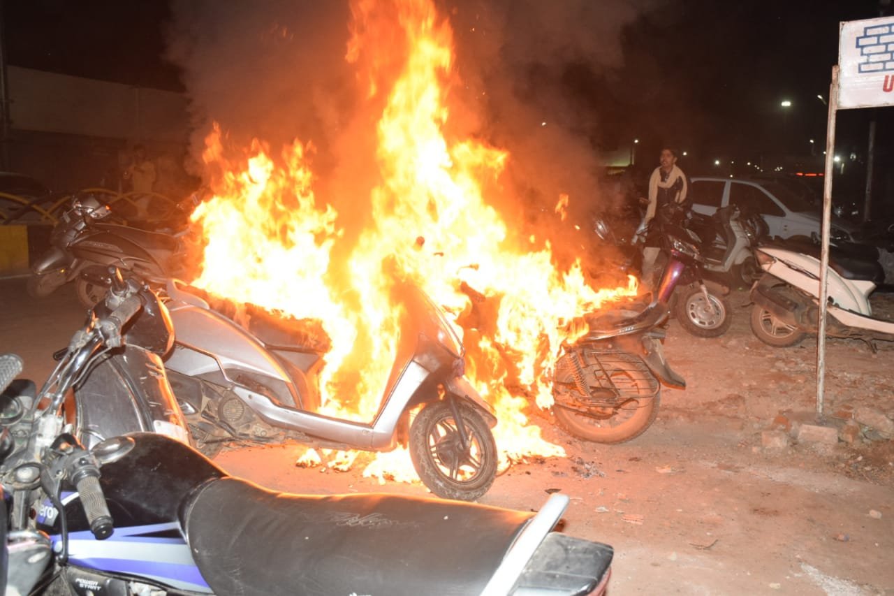 गरबा उत्सव के पार्किंग स्थल पर गाड़ियों में लगी आग