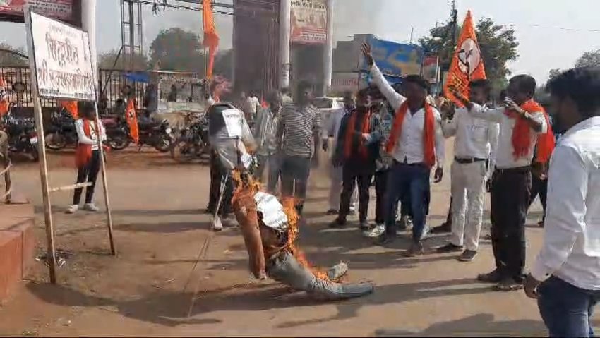 खैरागढ़. शिवसेना के जिला अध्यक्ष राम ठाकुर नेतृत्व में शहर अध्यक्ष पंकज साहू की अगवाई में बांग्लादेश में हो रहे बांग्लादेशी कट्टरपंथियों का शिव सैनिकों ने जोरदार विरोध किया वह बांग्लादेशी वामपंथियों मुर्दाबाद का नारा लगाते हुए पुतला दहन किया। जिसमें मुख्य रूप से शहर सचिव मुकेश श्रीवास, कौशलेंद्र सिंह, बघेल भानु, प्रताप वर्मा, चंद्रेश, कौशल, देव साहू, पहलाद वर्मा, युवराज वर्मा, ओम कोठले, युवराज ठाकुर, राजा बंजारे, निर्भय साहू, अग्रसेन लोधी, युवराज, लोकेश, राकेश, मुकेश, पलटू, साहिल इत्यादि शिव सैनिक उपस्थित थे।