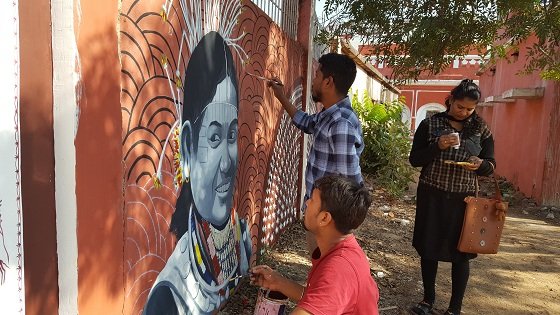 तीजन और बिसमिल्ला खां भी दिखे / बस स्टैंड जाने वाली रोड की दीवारों पर पंडवानी गायिका तीजन बाई, शहनाई वादक बिसमिल्ला खां, पटकथा लेखक, निर्देशक हबीब तनवीर और कवि रविंद्र नाथ टैगोर के चित्र भी दिखाई दिए। इसके अलावा परिसर की अन्य दीवारें लोक कला से सजाई गई हैं।