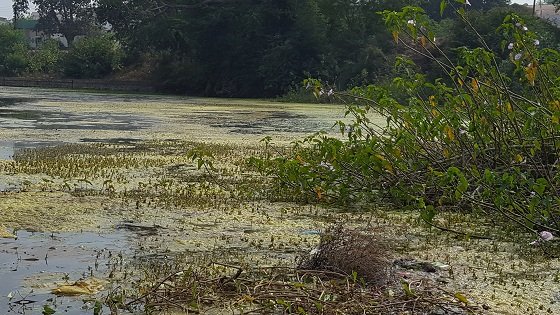 केस-1: ऊपर घाट में गंदगी के बीच नहाता दिखा युवक / दोपहर 2 बजकर 10 मिनट। गंजीपारा वार्ड के ऊपर घाट (पाॅवर हाउस) में पानी काफी कम है। सतह पर हरी परत चढ़ चुकी है। नदी का किनारा कीचड़ से लथपथ है। टूटे-फूटे बांध से थोड़ा-थोड़ा पानी बहकर नदी में जा रहा है। इसी पानी से एक युवक नहा रहा है।