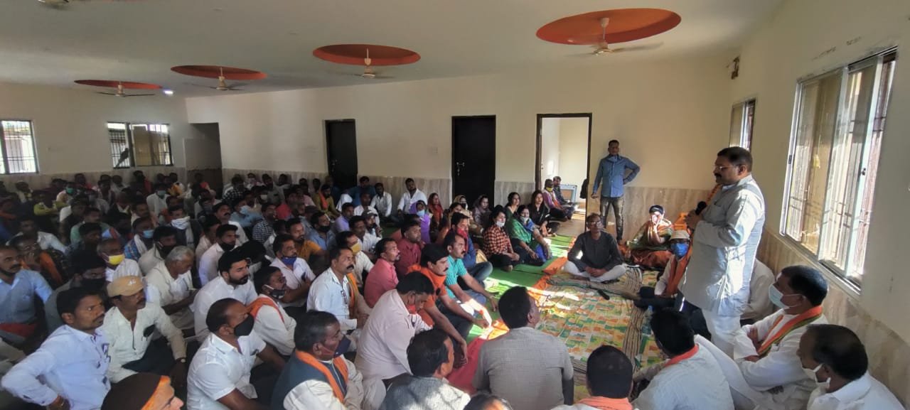 विधानसभा स्तरीय प्रदर्शन से पहले खैरागढ़ राजपूत भवन में हुई बैठक, सांसद संतोष पांडेय ने दिया विवादित बयान।