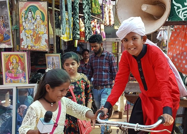 खैरागढ़. जब यासीन रिक्शे पर चढ़ा तो उसके साथ खड़ी बच्ची भी खिलखिला उठी।