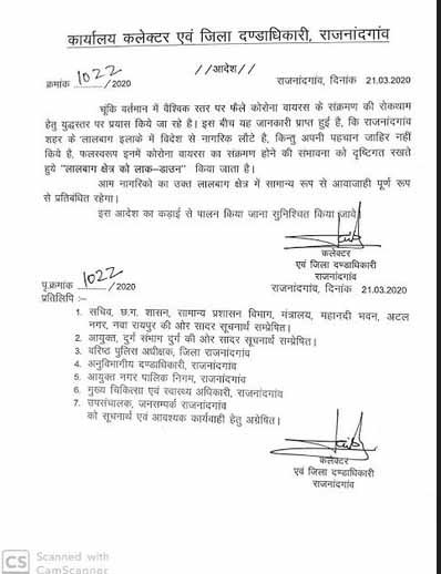 राजनंदगांव : कलेक्टर परिसर लालबाग क्षेत्र शनिवार को लॉक डाउन करने का आदेश जारी किया गया